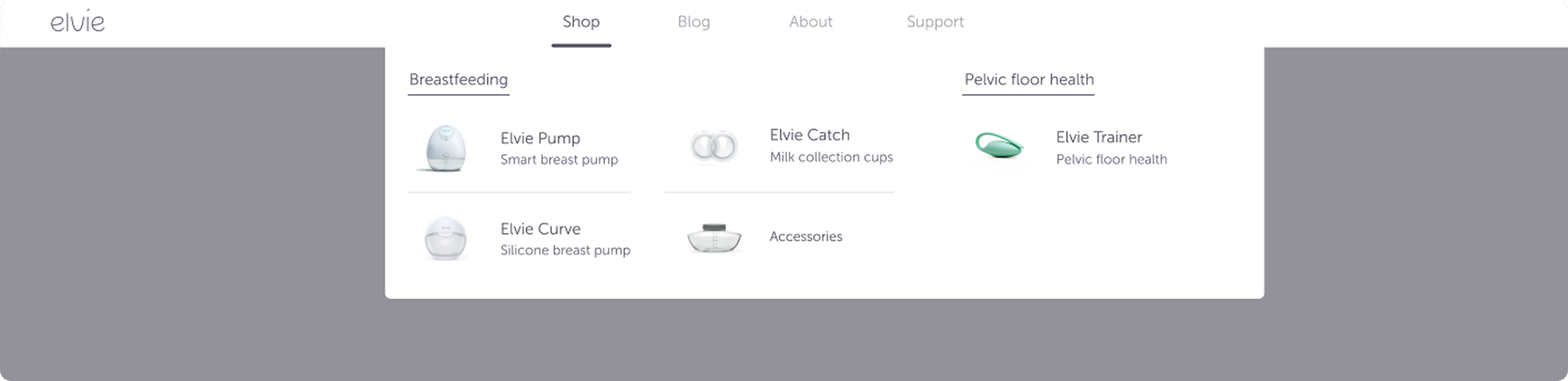 The navigation featured unique product names like “Catch,” “Curve,” and “Stride,” which could lead to confusion for users unfamiliar with Elvie’s product range. I identified this gap and suggested incorporating product imagery within the navigation to: