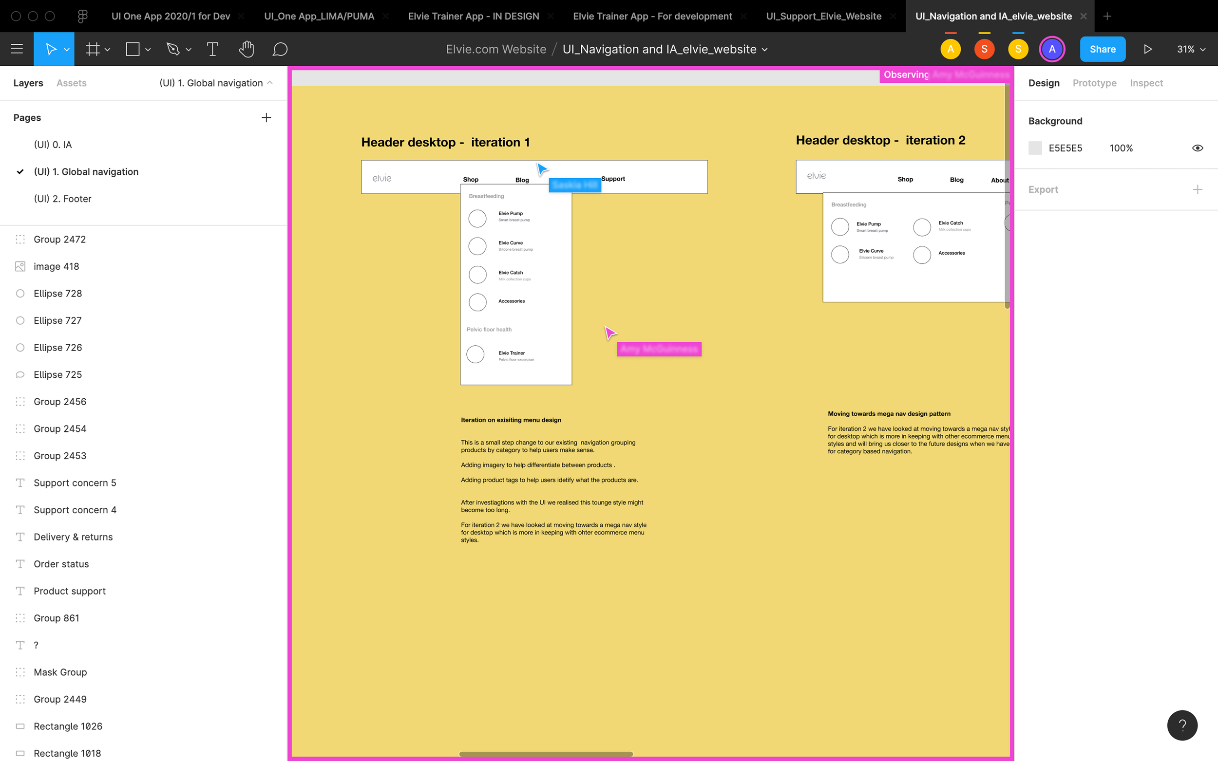 Through iterative design, research, and collaboration, I was able to optimise Elvie’s website navigation, enhancing accessibility, usability, and overall user engagement.