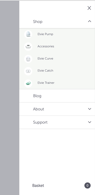We planned to update the navigation again in the next design iteration, for the official product launch, incorporating the new Elvie Catch, Curve, and Stride products.