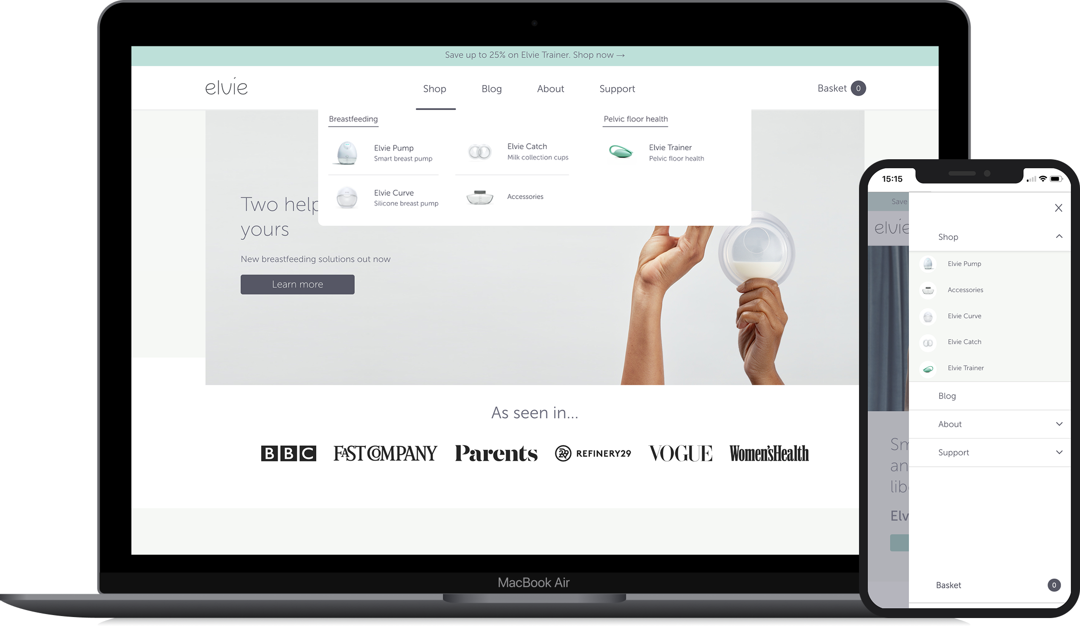As a Product Designer at Elvie, I was tasked with optimising the website’s navigation to enhance user engagement, streamline the e-commerce experience, and make the site mobile-first.