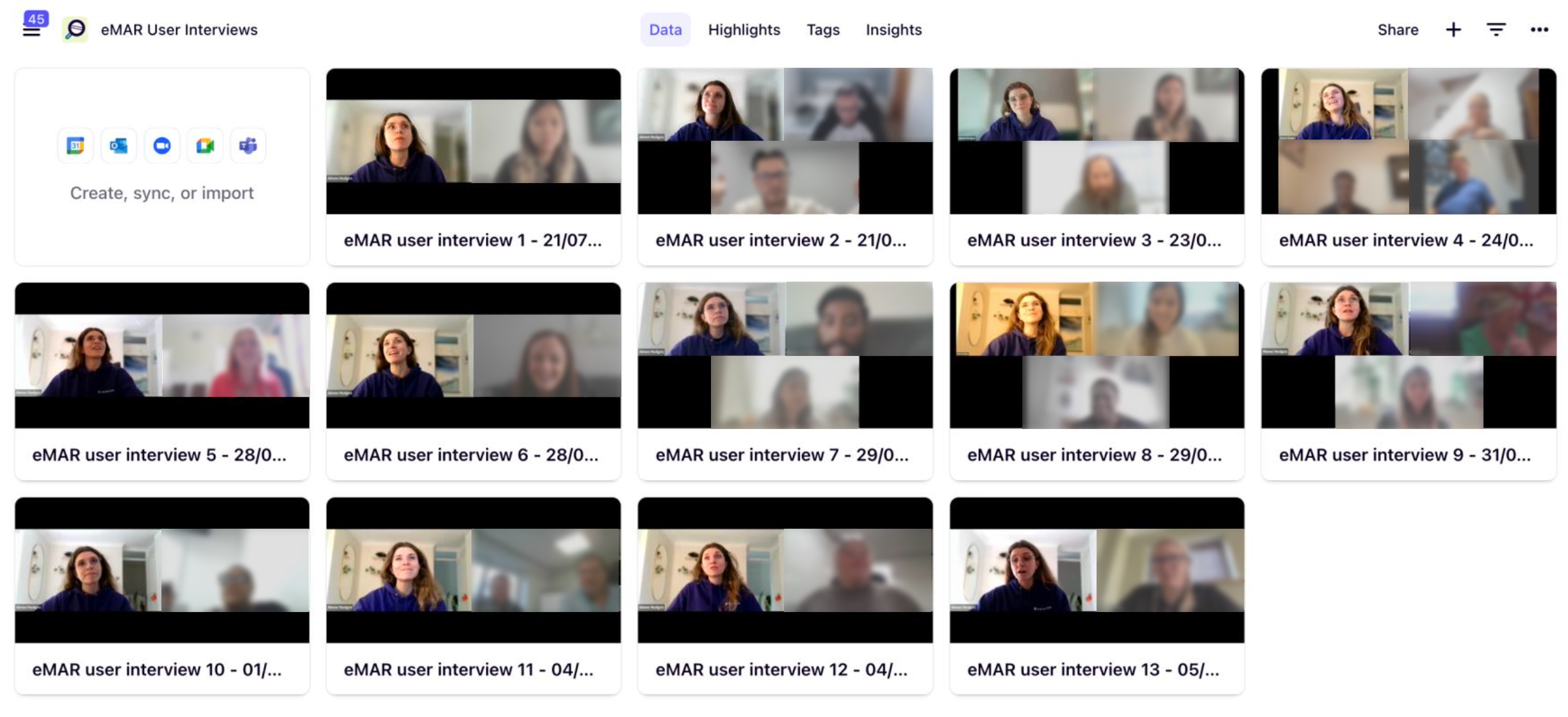 Interview recordings captured and organised in Dovetail as part of the 14-participant discovery phase. These sessions represented carers, managers and support staff across a range of care settings.