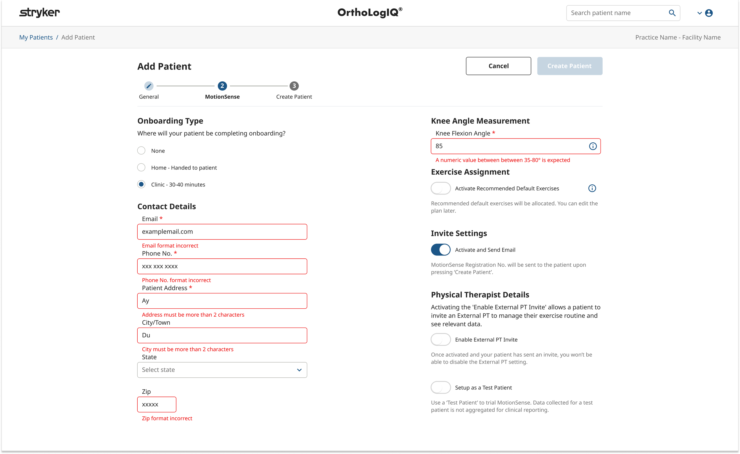 Three Step Layout: Split into ‘Personal Details’, ‘Surgery Info’, and ‘MotionSense’ for more granularity.